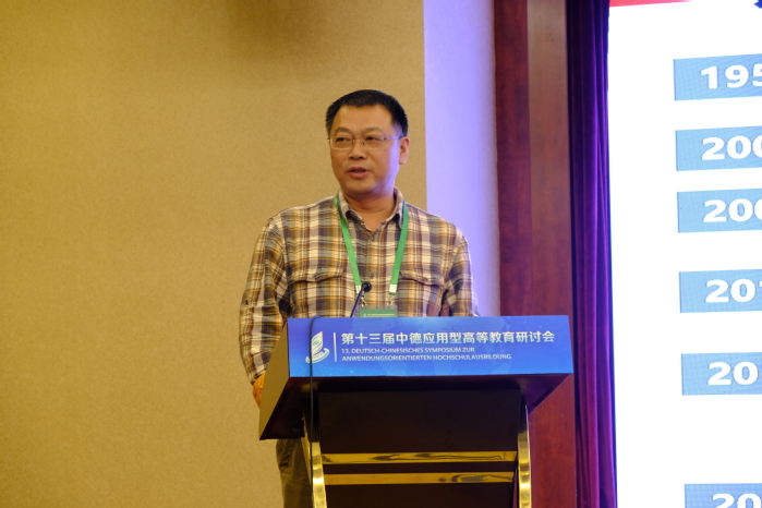 Das Thema des zweiten Unterforums war die Integration von Produktion und Bildung sowie die Ausbildung angewandter Fachkräfte. Der Moderator war Professor Li Qinghong, Vizepräsident der Hochschule Chuzhou. Professor Michael Schüller von der Hochschule Osnabrück, Professor Gu Yongan von der Technischen Hochschule Changshu, Professor Thomas Hoffman von der Hochschule Osnabrück und Herr Xu Jianjun, General Manager des HochsSchul-Unternehmen-Kooperationszentrums des 55. Instituts in Nanjing von CETC, Industrieprofessor der Provinz Shandong hielten Themenvorträge.