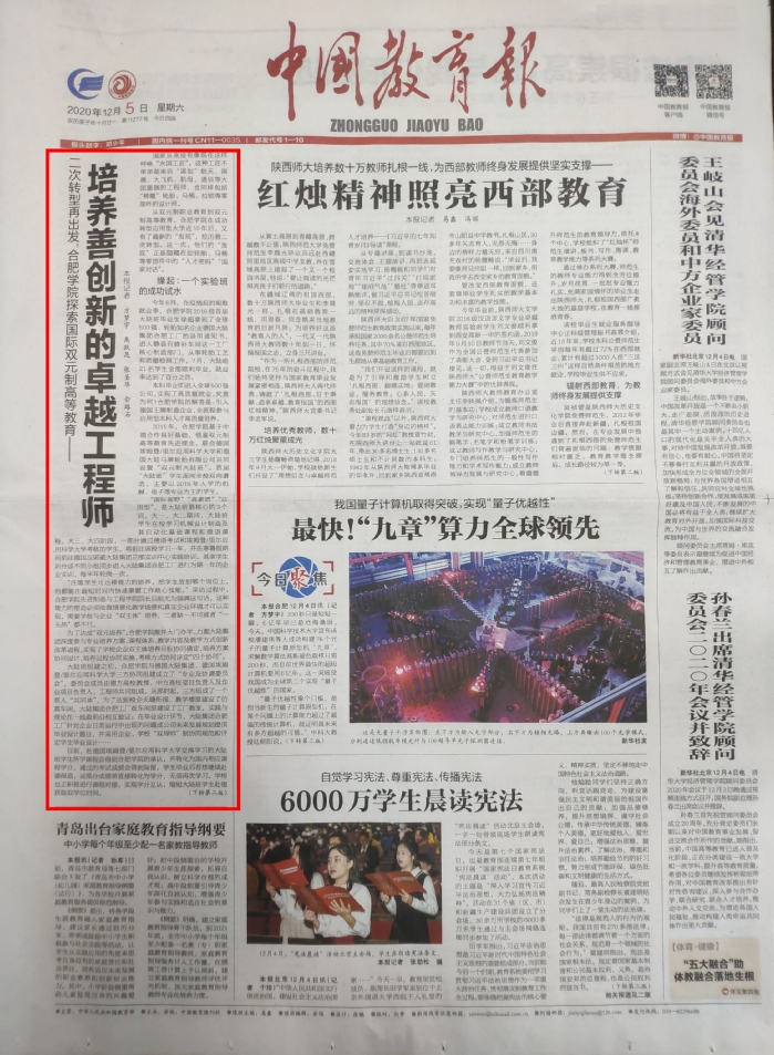 Einleitung: Am 5. Dezember berichtete die Titelseite der „China Education News“ über die internationale duale Hochschulbildung unserer Universität.