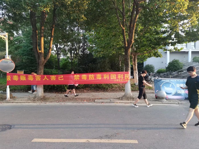 我校是合肥市禁毒高校联盟成员校之一,此次禁毒宣传教育活动依托我校大学生红十字会组织开展,在一期和二期校园内分别开设宣传点,摆放禁毒宣传教育海报和横幅。红十字会的志愿者们通过现场讲解毒品危害常识、举办毒品危害知识小问答、发放合肥市禁毒办统一制作的宣传小礼品等形式开展宣传教育活动,引导同学们关注国家禁毒的官方微信公众号,呼吁同学们提高毒品危害意识,自觉远离毒品。宣传期间,我校学生参与度高,主动了解有关毒品危害的知识,积极转发大学生红十字会官方平台的禁毒宣传文案,活动现场,很多同学在禁毒横幅和宣传展板上签名。
