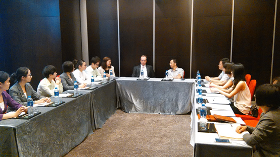 8月4日,校纪委书记洪家友在旅游系主任刘力、党总支副书记黄雄英以及认知实习指导老师徐丽霞、姜阳的陪同下,前往合肥万达威斯汀酒店检查旅游系2013级酒店管理专业认知实习工作,并与认知实习学生举行座谈会,合肥万达威斯汀酒店总经理约翰·贝雷斯福德(John Beresford)、人力资源总监梁娜以及相关负责人参加了座谈会。