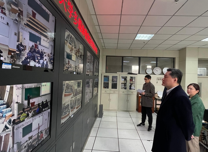 检查组深入课堂了解教师教学安排和学生学习状态,详细检查多媒体维保中心的运作情况,并实时观看了全校各班级的授课情况。王晓峰表示,要全力做好教学保障工作,为教学运行创造良好环境;要进一步压实主体责任,加强课堂教学管理,全面提升教学质量。