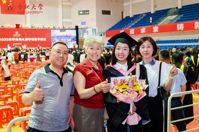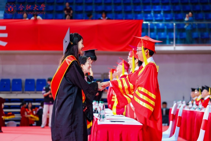本科生毕业生代表朱茜茹、研究生毕业生代表李小凡、留学生毕业生代表苏珍秋、“西部计划”毕业生志愿者代表马慧子、教师代表肖赟教授相继发言。朱茜如表示将以校训“厚德、博学、善思、致用”为精神动力,不负伟大时代,交上一份无愧于“合大人”的青春答卷。李小凡表示,将作为基层选调生积极把技术融入乡村治理,把论文写在祖国大地上。苏珍秋感恩合大培养及“一带一路”倡议带来的机遇,立志成为中柬文化交流桥梁。马慧子承诺扎根新疆基层,以“功成必定有我”的担当投身西部建设。肖赟赠言毕业生“保持自信、学习、温情”,以中科院院士逆境成长为例,勉励做有温度的时代青年。