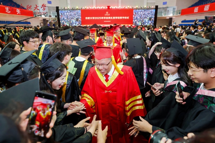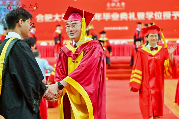 伴随着《祝你一路顺风》的音乐,在一片温馨而热烈的氛围中,校领导、校学位评定委员会成员与毕业生们一一握手送别、合影留念,为本次毕业典礼画上了圆满的句号。