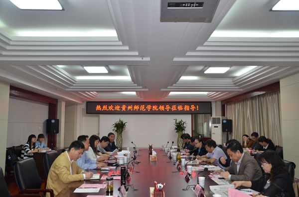 5月6日,贵州师范学院校领导陈扬书记、令狐荣锋副校长、严肃副书记、郭文副校长一行人来访我校。我校党委书记蔡敬民,副校长陈秀、刘建中在行政楼九楼东会议室热情接待了来宾。