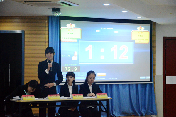 初赛第一、二场在二区大学生活动中心一顺利举行。电子信息与电气工程系对阵外国语言系,拉开了初赛第一场的帷幕。双方围绕“山寨的东西是否值得提倡”展开辩论。电子系作为正方,支持“提倡山寨的东西”。他们用俏皮的网络语作开场白,赢得台下笑声不断。随后,现场气氛立刻进入紧张状态,正方引经据典,旁征博引,提出“山寨文化作为一种主流文化的补充形式,值得提倡和保护”。面对正方辩友的立论陈词,反方外语系不甘示弱,以有力的论证进行激烈的攻辩。在自由辩中,双方辩手交替发言,针尖对麦芒,互不相让,将现场气氛推入高潮。随后双方对所持观点进行总结陈词。金小方对此次比赛做出精彩点评,他指出了双方的优点和不足,肯定了双方辩手都找到了落脚点,定位准确且有特色。最终,电子系凭借出色的口才顺利进入复赛,外语系马馨如获得最佳辩手称号。