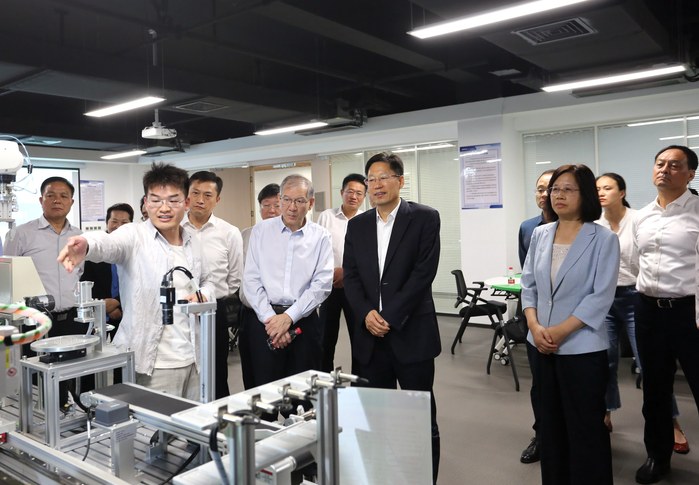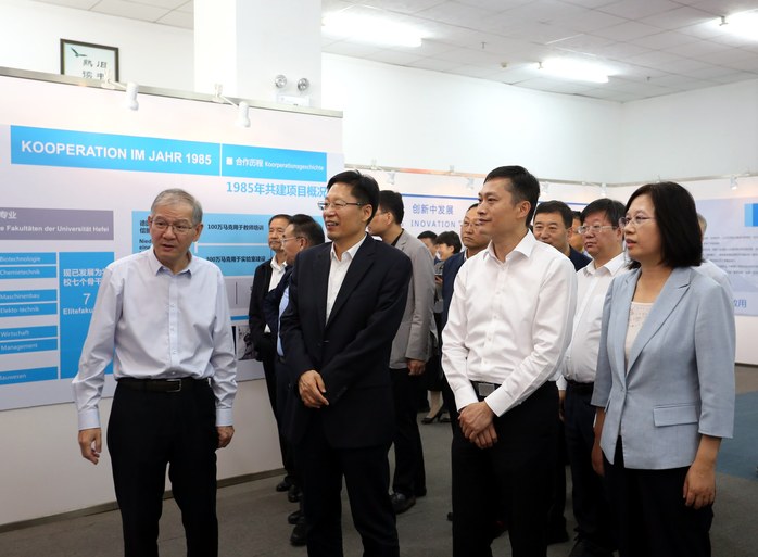 会前,刘玉杰一行先后参观了大众学院智能制造产教融合实践中心、多模态工业设备状态监测实验室及中德合作成果展厅等,详细了解学校学科建设、人才培养、学生就业等情况。